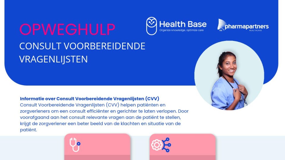 Consult Voorbereidende Vragenlijsten (CVV) helpen patiënten en zorgverleners om een consult efficiënter en gerichter te laten verlopen. Door voorafgaand aan het consult relevante vragen aan de patiënt te stellen, krijgt de zorgverlener een beter beeld van de klachten en situatie van de patiënt.