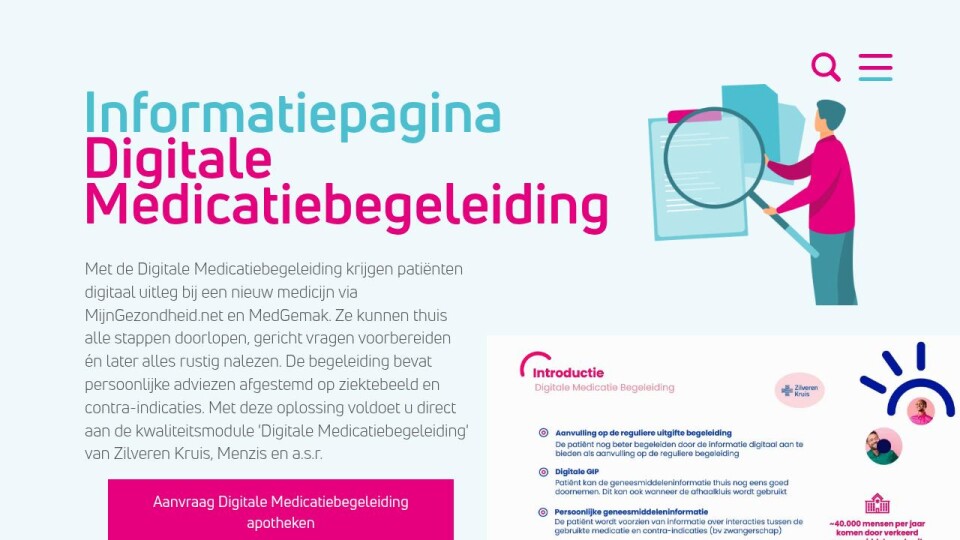 Toeslag mogelijk vanuit Zilveren Kruis, Menzis en a.s.r. voor kwaliteitsmodule 'Digitale Medicatiebegeleiding'