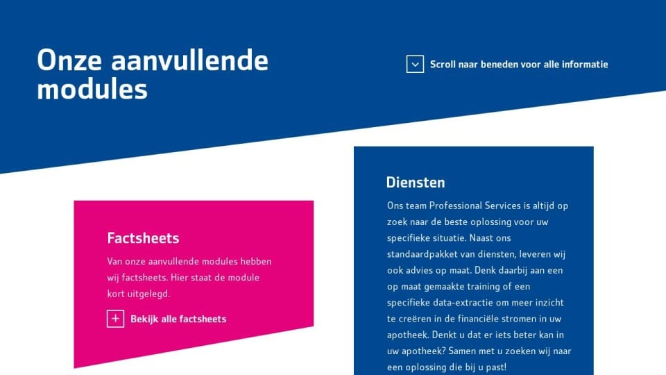 Van onze aanvullende modules hebben wij factsheets. Hier staat de module kort uitgelegd.