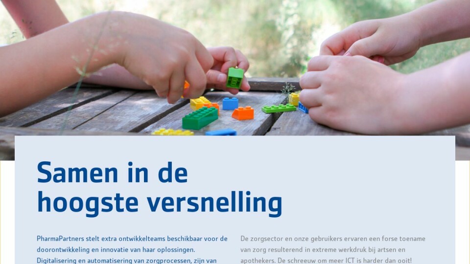 PharmaPartners stelt extra ontwikkelteams beschikbaar voor de doorontwikkeling en innovatie van haar oplossingen. Digitalisering en automatisering van zorgprocessen, zijn van essentieel belang voor goede zorg. We hebben in de afgelopen jaren veel geïnvesteerd in belangrijke zaken, zoals wet- en regelgeving, stabiliteit en performance van onze systemen en het aansluiten op landelijke ontwikkelingen. Deze noodzakelijke ontwikkelingen hebben ook impact gehad op de innovatiekracht en de doorontwikkeling van bestaande functionaliteiten. En daar gaan we per direct verandering in brengen.